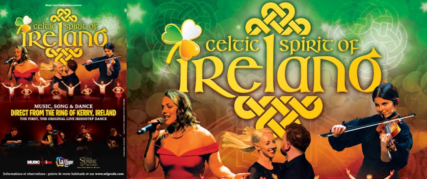 CELTIC SPIRIT OF IRELAND est l'oeuvre du producteur à succès irlandais : Michael Carr, qui regroupe 14 danseurs et musiciens sur scène. Le spectacle en direct présente, ensemble, les meilleurs danseurs irlandais, des musiciens exceptionnels et d'excellents chanteurs. Le spectacle est la carte de visite de l'Irlande avec des éléments naturels et originaux qui inspirent les téléspectateurs dans le monde entier depuis de nombreuses années.